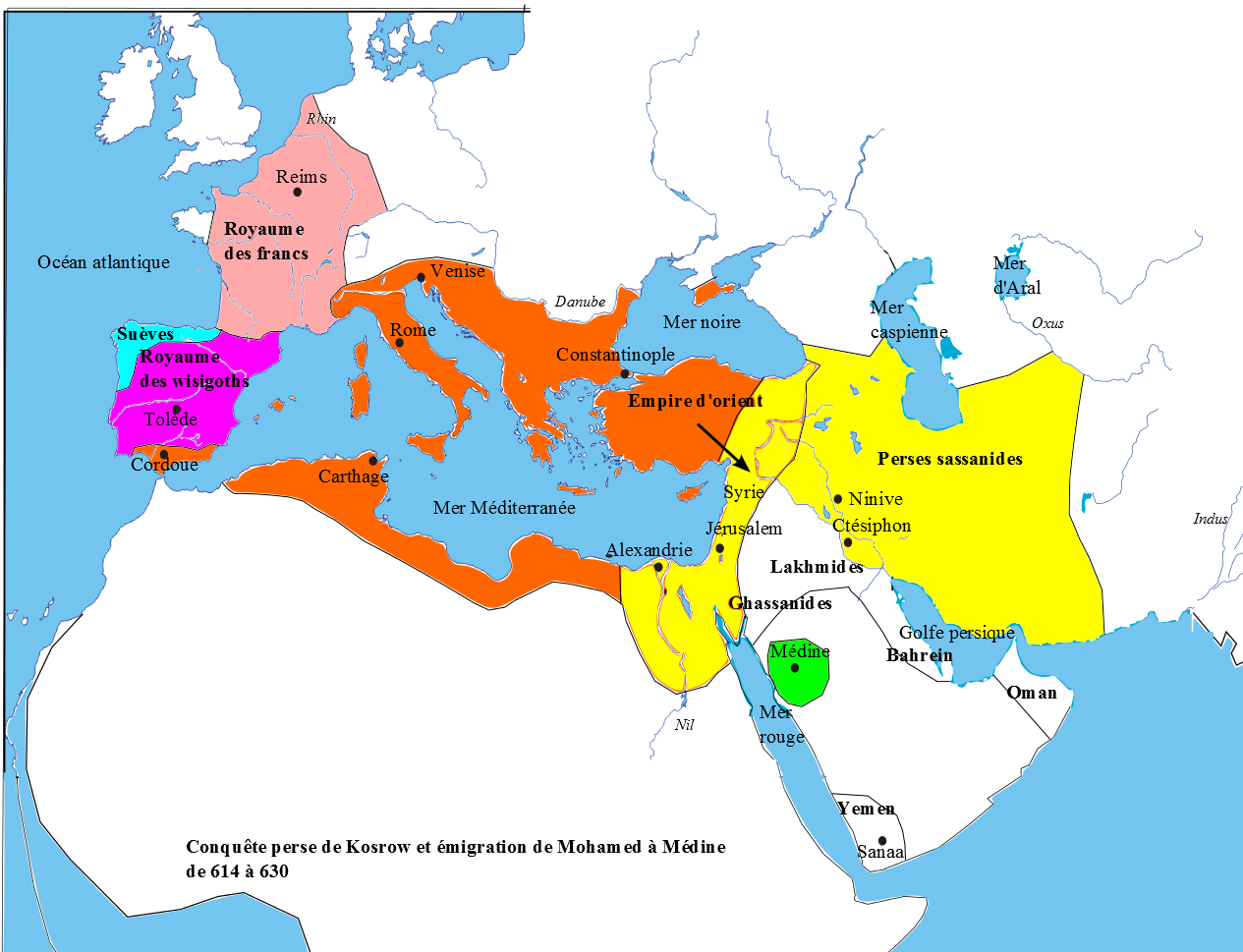 Conquête perse de Kosrow et émigration de Mohamed à Médine