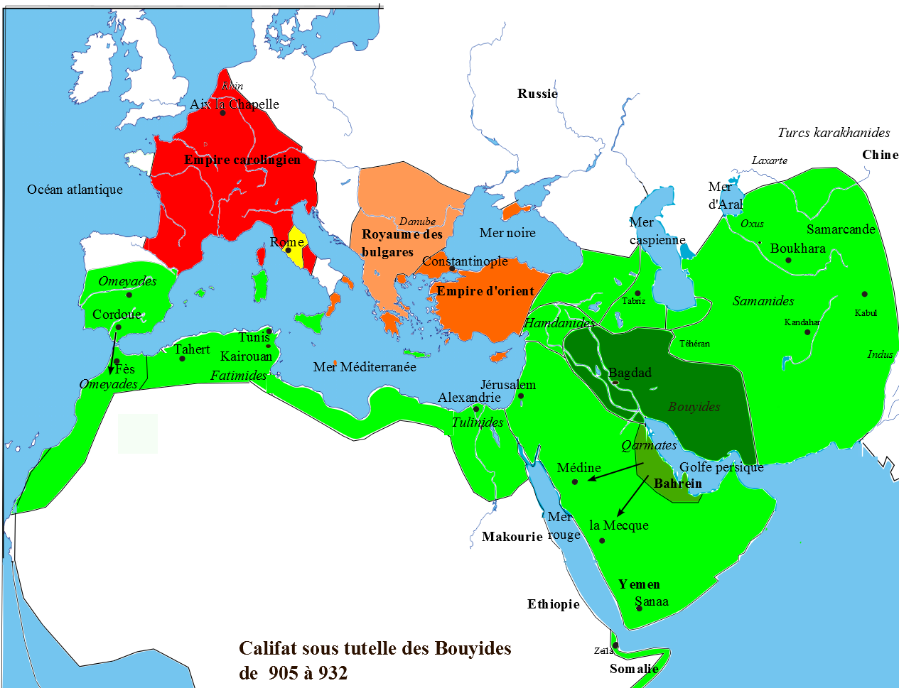 - 932 Les chiites d’Iran fondent la dynastie des bouyides (932-1055) et prennent Bagdad (945)