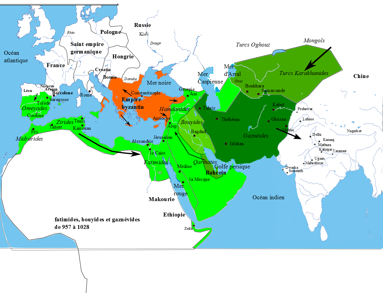 Dynasties Fatimides au Maghreb et en Egypte, gaznévides en Inde, turcs à Samarcande