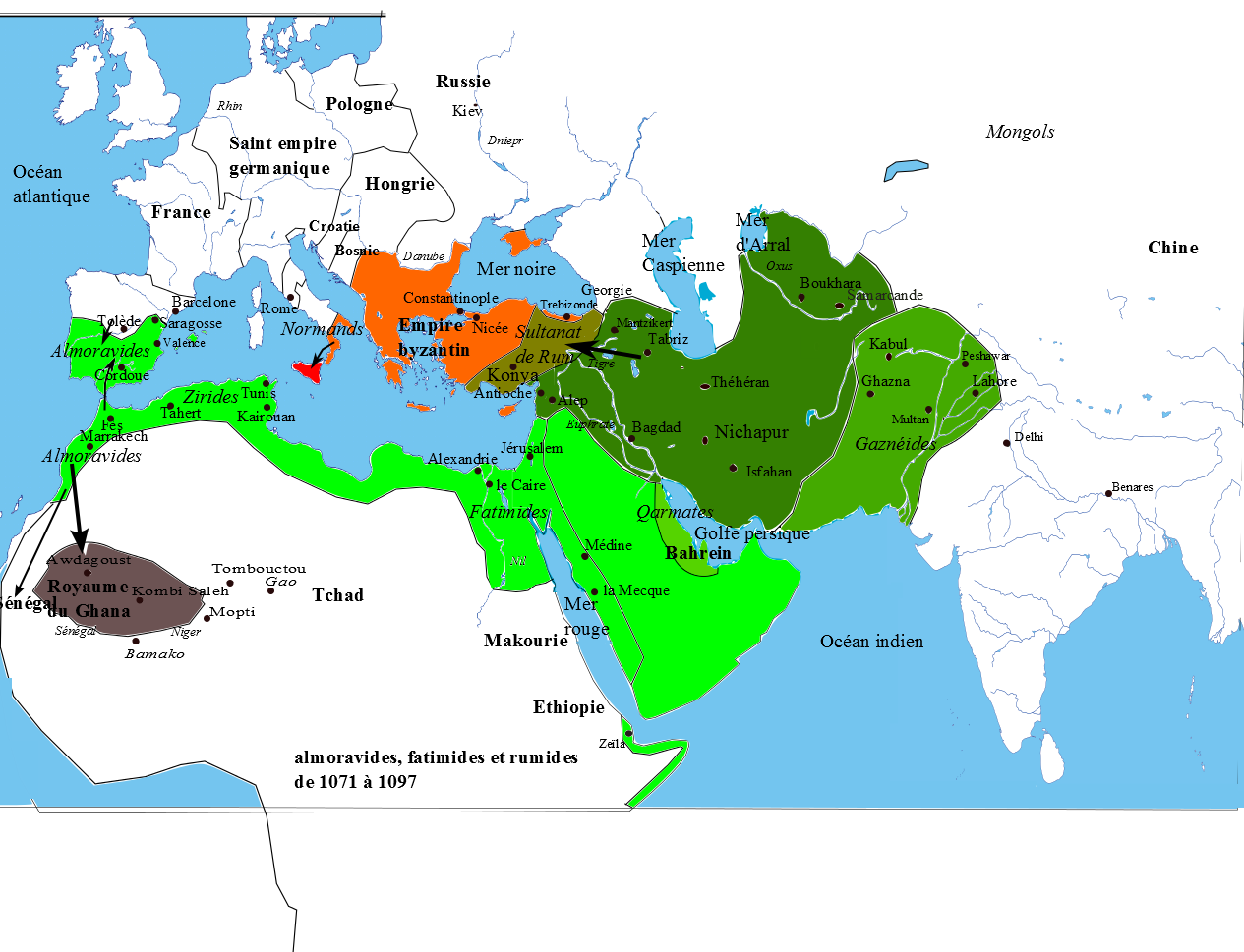 Almoravides en Espagne et au Ghana, sultanat turc de Rum en Anatolie, les normands en Sicile