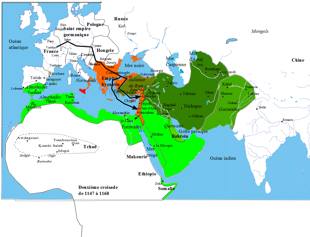- 1147 2ème croisade : saint Bernard va jusqu’à Damas