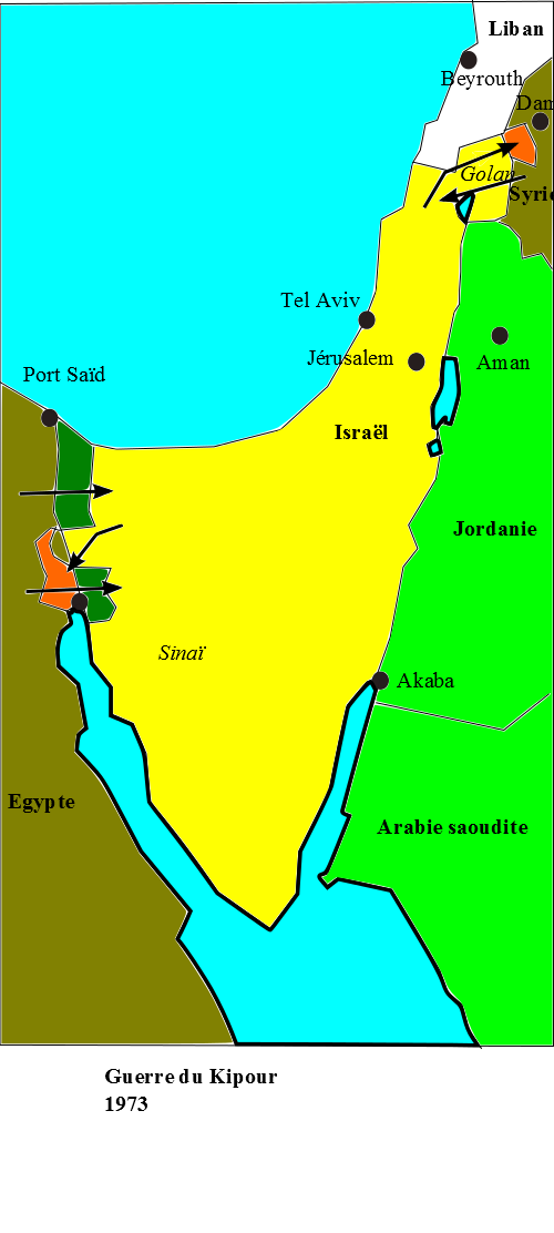 - 1973 Les égyptiens et les syriens attaquent par surprise le Golan et le Sinaï.